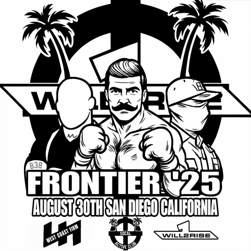Flyer for Frontier 25, sponsored by three hate groups: West Coast Firm (A Hammerskins front), SoCal Active Club, and Will2Rise.