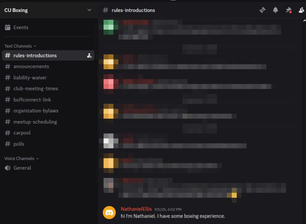 Nathan’s introduction in the CU Boulder Boxing Club Discord.