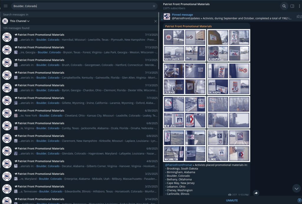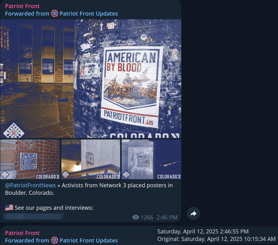 Since Nathan enrolled at CU Boulder in 2024, the campus has been hit with numerous counts of Patriot Front and Active Club posters, graffiti, and stickers. This ended a lull in Patriot Front activity on campus after former CU student Patryck Scott Durham was exposed as a member of the hate group and subsequently transferred to the University of Wyoming.