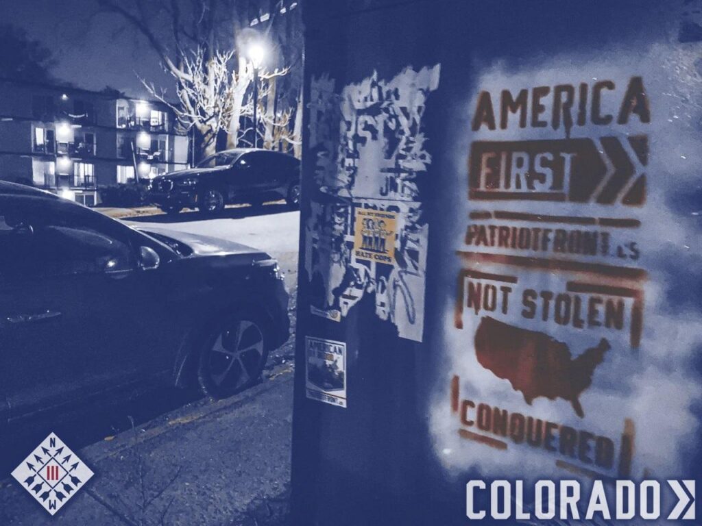 Patriot Front graffiti near the Boulder Public Library, dated December 2024.