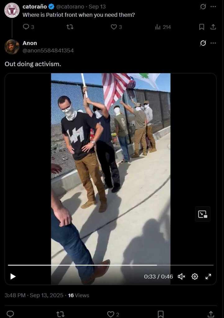 It is worth noting that Patriot Front never liked Charlie Kirk, in large part because TPUSA consistently kicked out hate group members (like Nathan) when their beliefs were publicized. Patriot Front advocates organizing outside conventional electoral politics, including conservative institutions like TPUSA, but with Kirk gone, neo-Nazis are attempting to profit from the anti-left sentiment stirred up by Kirk’s assassination.